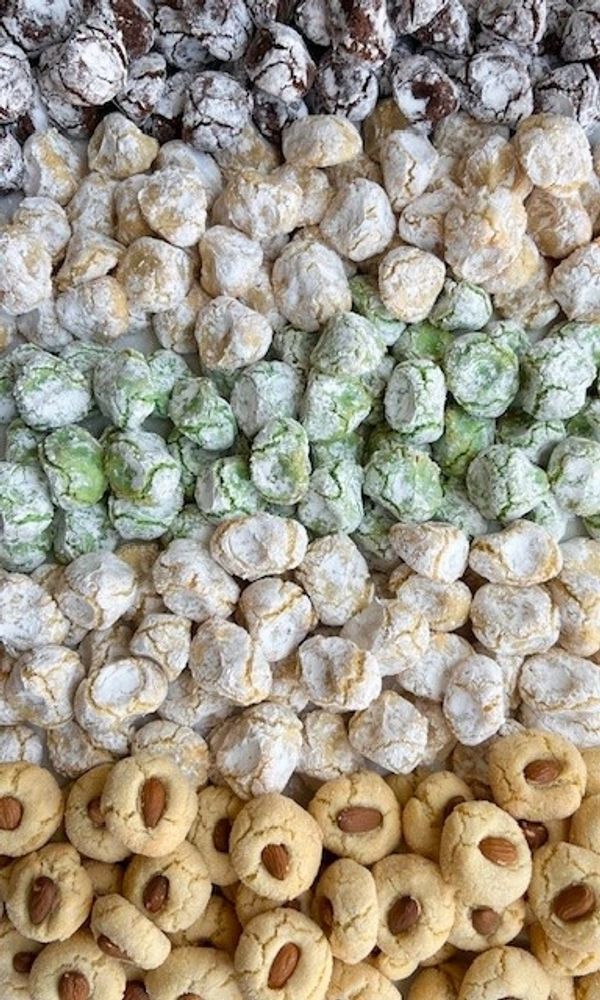 23 piece assortment of nutella crumble, classic amaretti, assorted pasta di mandorle